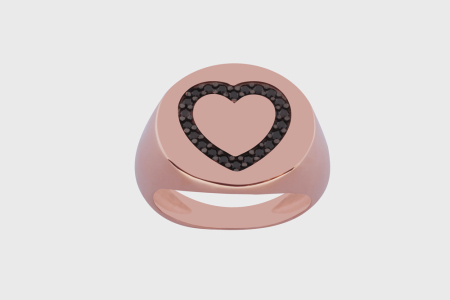 Δαχτυλίδι Chevalier Σε Ροζ Χρυσό Με Σχέδιο Καρδιά Και Μαύρα Ζιργκόν