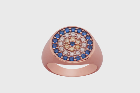 Δαχτυλίδι Chevalier Σε Ροζ Χρυσό Με Μάτι Με Μπλε Λευκά Και Καφέ Ζιργκόν