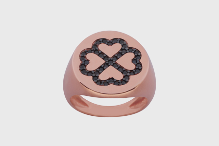 Δαχτυλίδι Chevalier Σε Ροζ Χρυσό Με Σχέδιο Τετράφυλλο Τριφύλλι Και Μαύρα Ζιργκόν