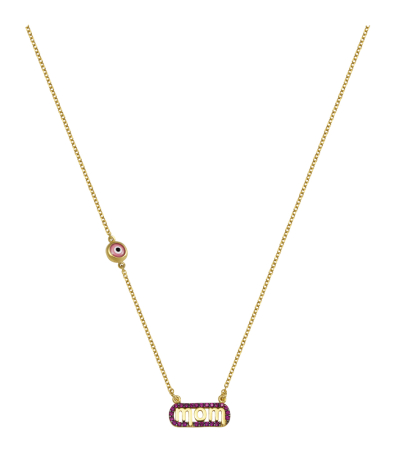Necklace In Yellow Gold With Eye Details And The Word Mom