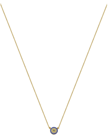 Κολιέ σε κίτρινο χρυσό με ζιργκόν μπλε και λευκά.