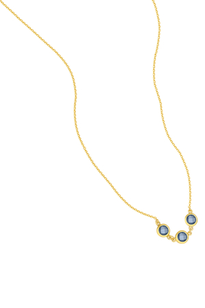 Κολιέ σε κίτρινο χρυσό με double aqua marine πέτρες. Διαθέσιμο και με rubin πέτρες.