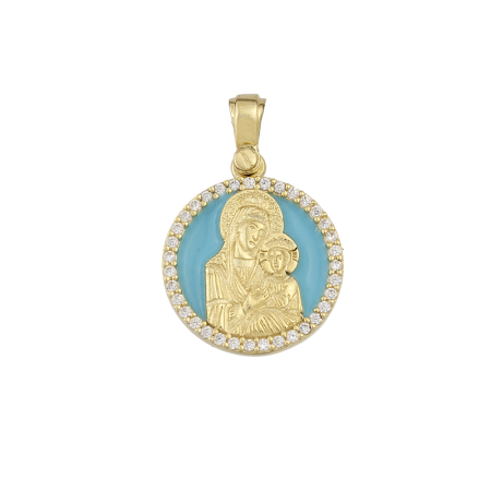 Μενταγιόν Κωνσταντινάτο Σε Κίτρινο Χρυσό Με Σμάλτο Και Λευκά Ζιργκόν