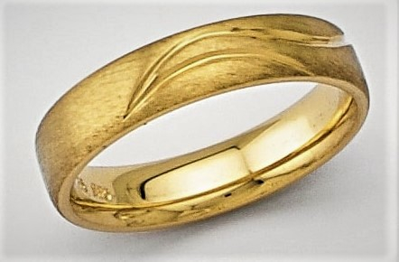 Βέρα σε κίτρινο χρυσό ματ με εγχάρακτο σχέδιο.