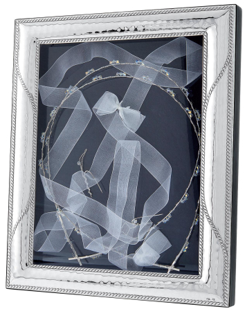 Ασημένια στεφανοθήκη με διακοσμητικές χαράξεις, διαθέσιμη με λευκή και με μαύρη ξύλινη πλάτη.