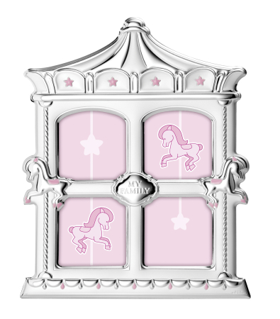 Παιδική ασημένια κορνίζα με 4 θέσεις σε σχήμα κάστρου.