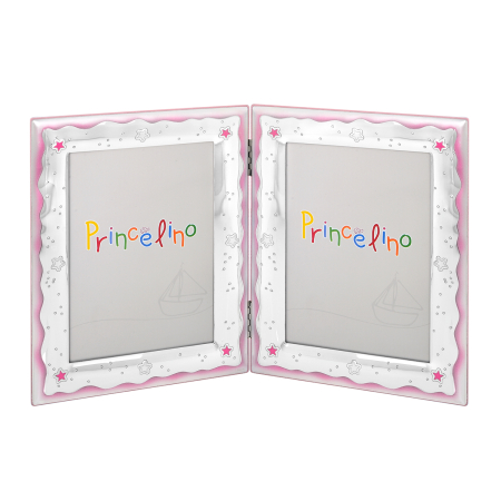 Παιδική ασημένια κορνίζα διπλή με αστεράκια.