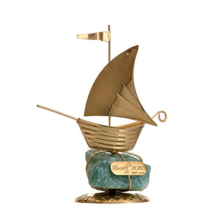 Ασημένιο καραβάκι, ύψους 10,5 εκ. σε βάση από ημιπολύτιμο λίθο.