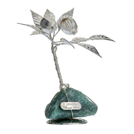 Ασημένιο δεντράκι ροδιά ύψους 13,5 εκ., με βάση από ημιπολύτιμο λίθο.
