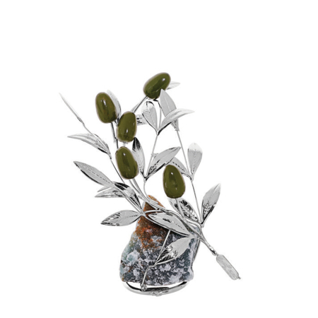 Ασημένιο δεντράκι ελιά ύψους 9 εκ. με βάση από ημιπολύτιμο λίθο.