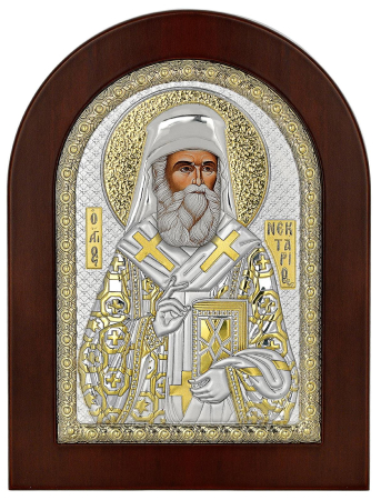 'Αγιος Νεκτάριος, σε ασήμι με επιχρύσωμα ή με χρώματα σμάλτου.