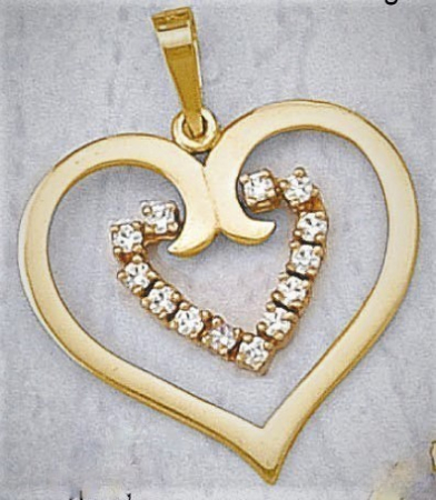 Μενταγιόν καρδιά σε κίτρινο χρυσό με λευκά ζιργκόν, διαθέσιμο και σε λευκό χρυσό και σε δίχρωμο.