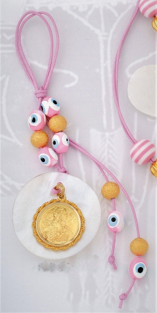 Κολιέ με δέρμα, ένθετο μενταγιόν και φίλντισι.