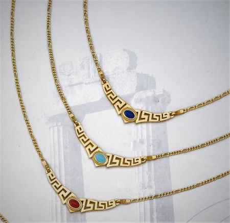 Κολιέ αλυσιδωτό με μαίανδρο και κεντρική πέτρα, συνθετικό λάπις, κοράλλι, τυρκουάζ ή οπάλιο, διαθέσιμο και χωρίς πέτρα.