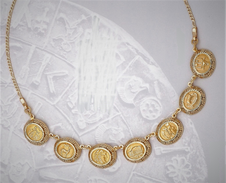 Κολιέ με μοτίβα ελληνικών παραστάσεων σε κίτρινο χρυσό.