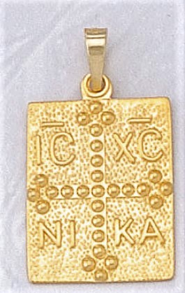 Κωνσταντινάτο "IC XC NIKA" με παραλληλόγραμο σχήμα σε κίτρινο χρυσό. Διατίθεται και σε βάρος 2,00 γρ.