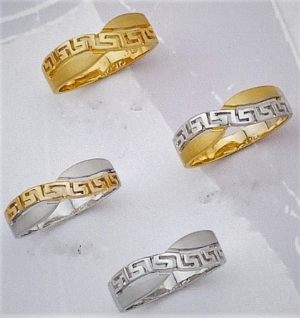 Δακτυλίδι με μαίανδρο χιαστί με ματ τμήμα, σε κίτρινο, λευκό ή δίχρωμο χρυσό.