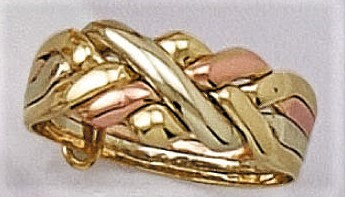 Δακτυλίδι "πλεκτό" δίχρωμο, διαθέσιμο και σε κίτρινο χρυσό, και σε ποικιλία βαρών, από 3,90 ως 10,00 γρ.