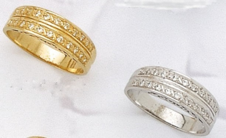 Δακτυλίδι με δύο σειρές ζιργκόν λευκά σε κίτρινο ή λευκό χρυσό, διαθέσιμο και με τρεις σειρές.