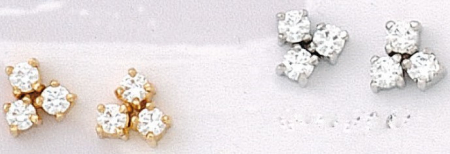 Σκουλαρίκια με τρία ζιργκόν καρφωτά, σε κίτρινο ή λευκό χρυσό, διαθέσιμα και σε μικρότερο μέγεθος