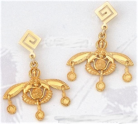 Σκουλαρίκια μέλισσες κρεμαστά σε κίτρινο χρυσό και ποικιλία μεγεθών.