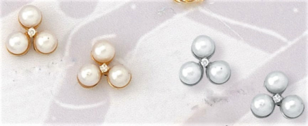 Σκουλαρίκια με τρία μαργαριτάρια και ζιργκόν στο κέντρο, καρφωτά σε κίτρινο ή λευκό χρυσό.