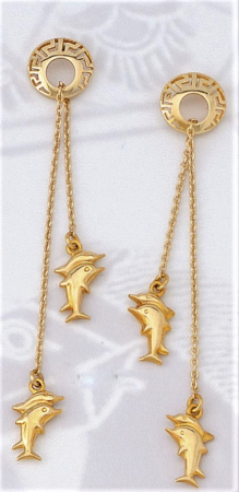 Σκουλαρίκια κρεμαστά με μαίανδρο, αλυσίδα και δελφίνια σε κίτρινο χρυσό.
