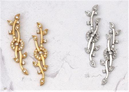 Σκουλαρίκια με κυκλικά στοιχεία, φύλλα και ζιργκόν σε κίτρινο ή λευκό χρυσό.