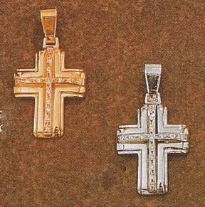 Σταυρός με χαράξεις στο περίγραμμα και ζιργκόν λευκά που σχηματίζουν δεύτερο σταυρό στο κέντρο, σε κίτρινο ή λευκό χρυσό