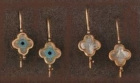 Σκουλαρίκια με ματάκι και φίλντισι σε σχήμα σταυρού σε κίτρινο χρυσό