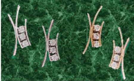 Σκουλαρίκια καρφωτά με χιαστί σύρμα και ζιργκόν σε κίτρινο και λευκό χρυσό