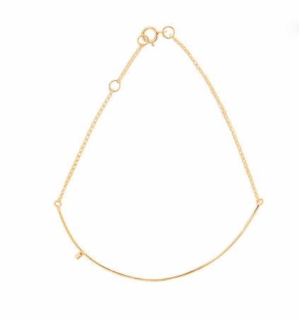 Βραχιόλι χρυσή λωρίδα με ένα μικρό μπριγιάν 0,007 ct χρυσή αλυσίδα αραοπλεγμένη 12,5 εκ.