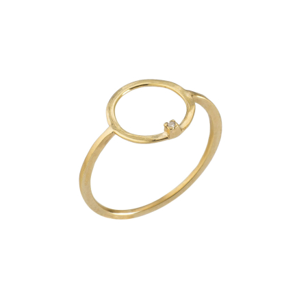 Δακτυλίδι στρογγυλό κρικάκι με μπριγιαντάκι 0,007 ct σε κτυπημένη πλακέ γάμπα με το στοιχείο στο κέντρο.