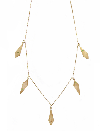 Μενταγιόν αλυσίδα 45 εκ. με 5 στοιχεία ρόμβους με 5 τσαβορίτες.