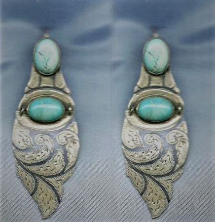 Σκουλαρίκια παραδοσιακά χειροποίητα με διακοσμητικές χαράξεις και πέτρες τυρκουάζ