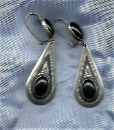 Σκουλαρίκια παραδοσιακά χειροποίητα "σταγόνα" με μαύρο οπάλ