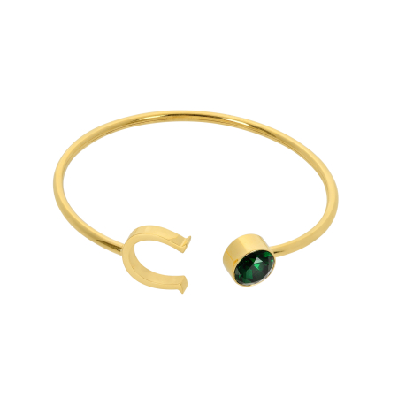Χειροπέδα ασημένια με πέταλο και ζιργκόν πράσινο, διαθέσιμη σε λευκό και κίτρινο χρώμα.