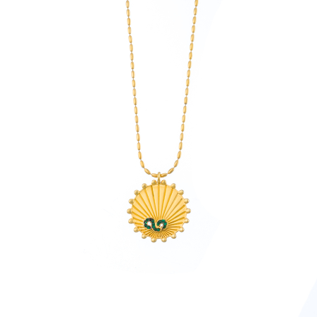 Κολιέ από ορείχαλκο επίχρυσο φλουρί με πράσινα ζιργκόν, διαθέσιμο και με μαύρο πλατίνωμα