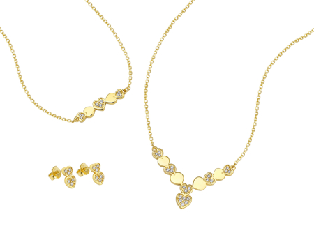 Καδενωτό Σετ Σε Κίτρινο Χρυσό με μοτίβα καρδιές και λευκά ζιργκόν.