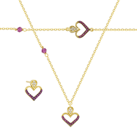 Κολιέ - βραχιόλι - σκουλαρίκια σε κίτρινο χρυσό με στοιχείο καρδιά Βάρος: K:2,2gr - ΒΡ:1,4gr - ΣΚ:1,6gr