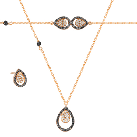Κολιέ - βραχιόλι - σκουλαρίκια σε ροζ χρυσό με ζιργκόν Βάρος: K:2,7gr - ΒΡ:2,1gr - ΣΚ:1,7gr