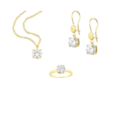 Σετ μονόπετρο Σε Κίτρινο Χρυσό, με λευκά ζιργκόν, διαθέσιμο σε πολλά χρώματα.