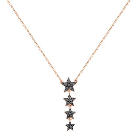 Κολιέ σε ροζ χρυσό με στοιχείο αστέρι και μαύρα ή λευκά ζιργκόν.