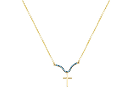 Κολιέ σε κίτρινο χρυσό με στοιχείo σταυρό και τυρκουάζ.