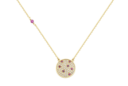 Κολιέ σε κίτρινο χρυσό με ζιργκόν λευκά και κόκκινα.
