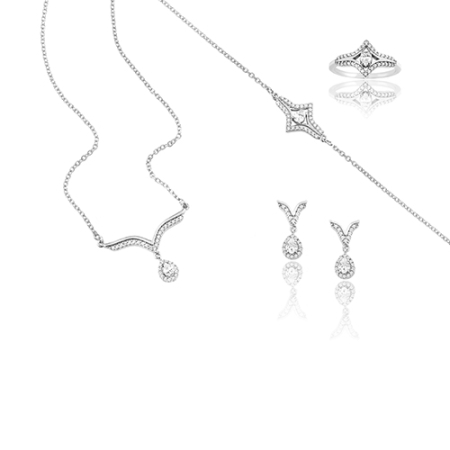 Σετ με ροζέτες τύπου "δάκρυ" και σειρέ πέτρες με λευκά ζιργκόν. Διατίθεται και σε άλλα χρώματα χρυσού- πετρών.