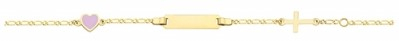 Παιδική ταυτότητα σε κίτρινο χρυσό σε σχήμα ορθογώνιο με στοιχείο καρδιά με σμάλτο και σταυρό