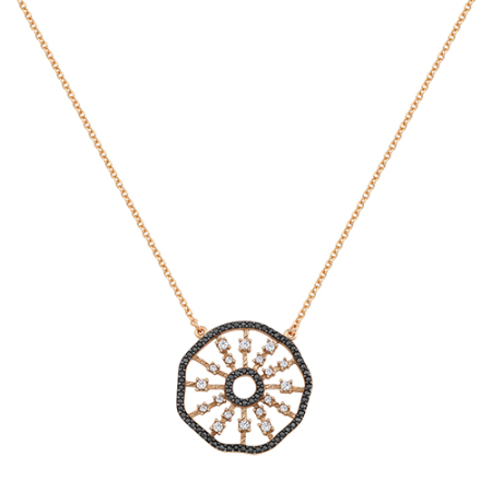 Κολιέ σε ρόζ χρυσό με μαύρα και λευκά ζιργκόν
