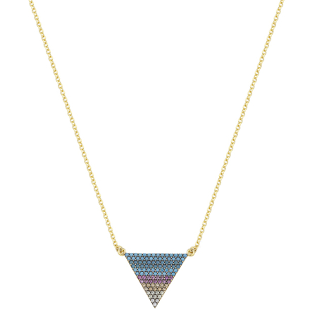 Κολιέ Σε Κίτρινο Χρυσό Με Ρόζ-Οινοπνευματί-Κίτρινα Ζιργκόν, Milky και Τυρκουάζ