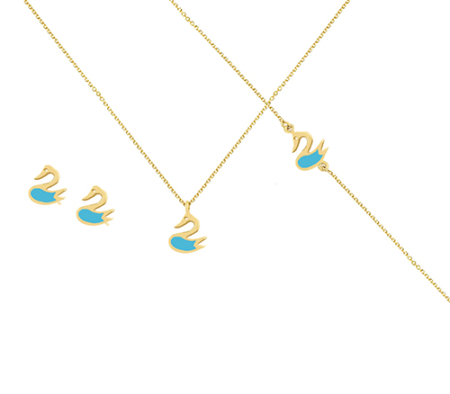 Κολιέ - βραχιόλι - σκουλαρίκια σε κίτρινο χρυσό με στοιχείο κύκνο και σμάλτο
